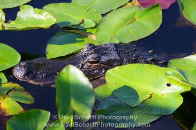 One thing you have to be careful of in Miami is alligators. As Jesse Kennon, head of Coopertown Airboat Tours says, if there's water in Miami, it either has an alligator in it, it had an alligator in it, or it will have an alligator in it. Jesse was kind enough to take me on a private airboat tour of the Everglades, using the actual boat used in the intro of CSI: Miami. In case you're wondering, his boats were the ones also used in the old Gentle Ben and Flipper TV series, for which he was a full time consultant. Within minutes of our trip into the Everglades, we came across this 'gator, who came right up to the boat. If you ever wonder why those seats on the boats are so high, well, now you know. For more pictures of animals, visit Paul Scharff Photography.com.
